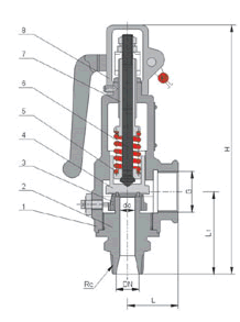 A28H 16/25/40 型带手柄弹簧全启式安全阀 外形尺寸和连接尺寸
