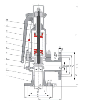 A47H型带扳手弹簧微启式安全阀适用于工作温度≤350℃的蒸汽、空气等介质的设备或管路上。作为超压保护装置。连接法兰标准按JB/T-94的系列1。