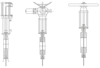 本产品驱动装置可采用电动、气动、手动、伞齿轮转动等装置。汽动装置可安装空气过滤器、电磁阀、感应器,如安装以上驱动装置,汽动装置应在合同中注明。