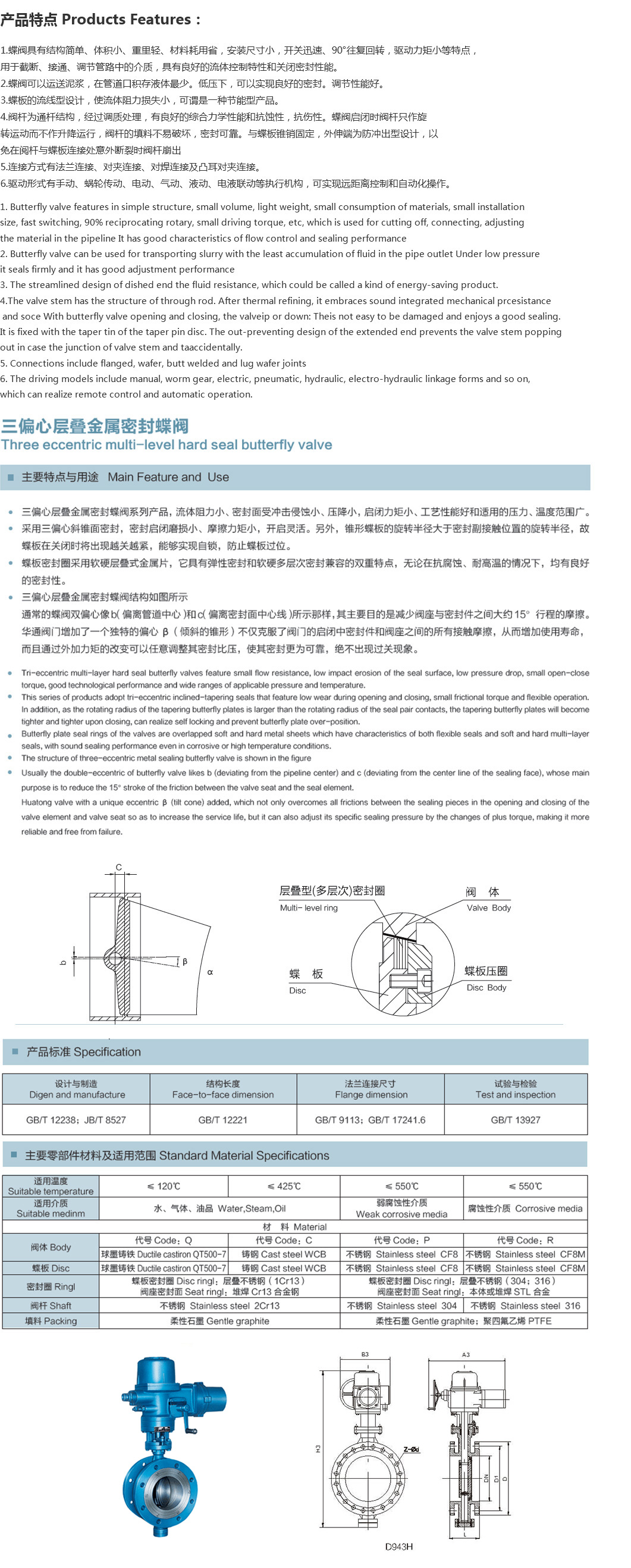 > D943H电动法兰三偏心硬密封蝶阀
