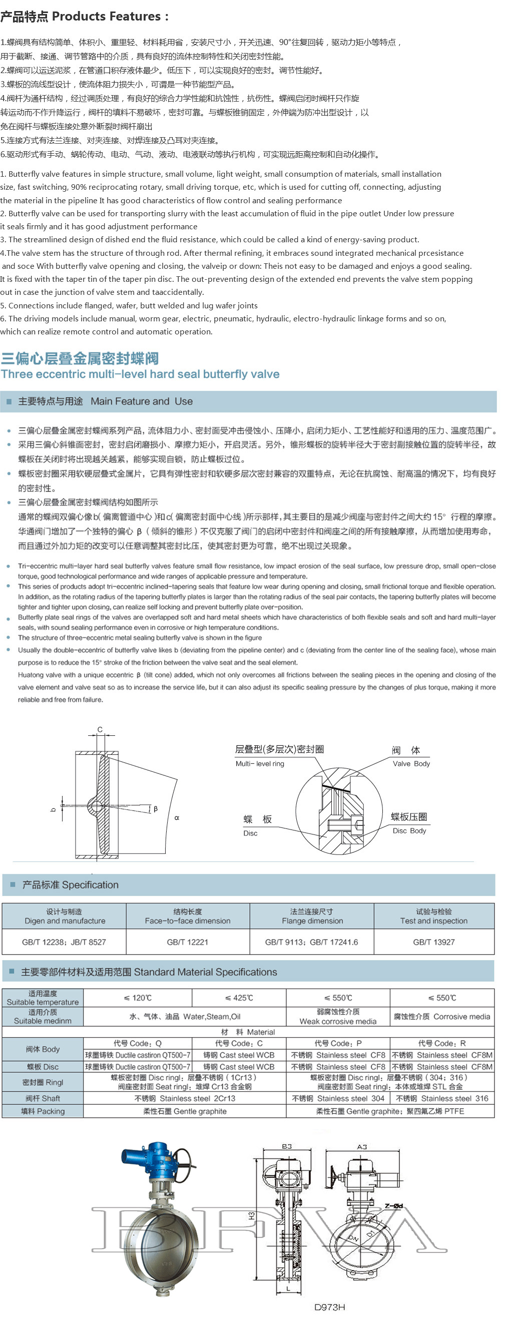 电动对夹式三偏心硬密封蝶阀D973H