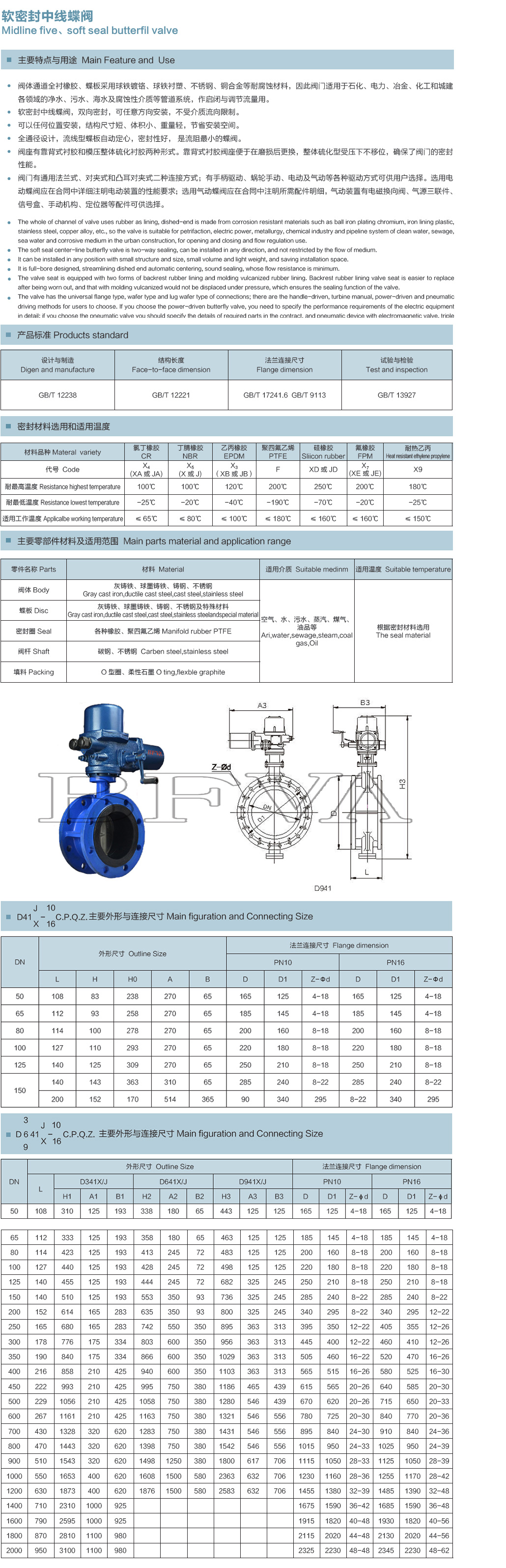 > 电动法兰中线软密封蝶阀D941X