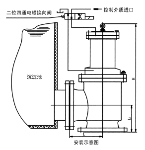 液压、气动角式快开排泥阀,是一种由液压源或气动源作执行机构的角型截止类阀门。通常成排安装在沉淀池底部外侧壁,用以排除池底沉淀的泥砂和污物。该阀液压缸之活塞为L形皮碗,密封性能好,经久耐用,阀门密封副亦为橡胶密封,无泄漏。还可通过电动二位四通换向电磁阀实现远程控制。操作方便,安全可靠。