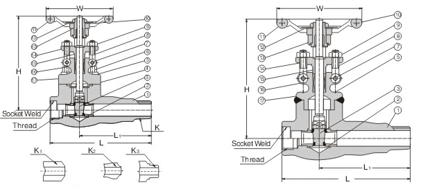 锻钢加长端闸阀有三种体盖连接设计形式。第一种是体盖螺栓连接锻钢加长端闸阀,按这种连接形式设计的阀门,其阀体与阀盖用螺栓连接,缠绕式垫片密封,优点是便于维修。第二种体盖焊接连接锻钢加长端闸阀,按这种连接形式设计的阀门,其阀体与阀盖全焊密封,优点是无外泄漏。第三种是压力自紧式阀盖锻钢加长端闸阀,按这种连接形式设计的阀门,其阀体与阀盖用螺蚊连接,内压自密封环密封,优点是内部压力越大,其密封性能越好。您可以根据实际情况合理选用我们的阀门。