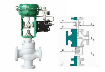 气动三调节阀阀体为三通结构,即一进两出(分流型),两进一出(合流型),其中三通合流调节阀用于将两种流体混合成第三种流体,或两种不同温度的同种流体,混合成同一温度流体。而三通分流阀则是将一种流体分成两路流体。